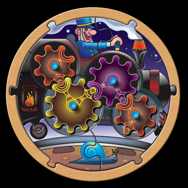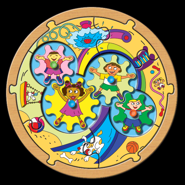 Design for a preschooler toy puzzle with moving gears.