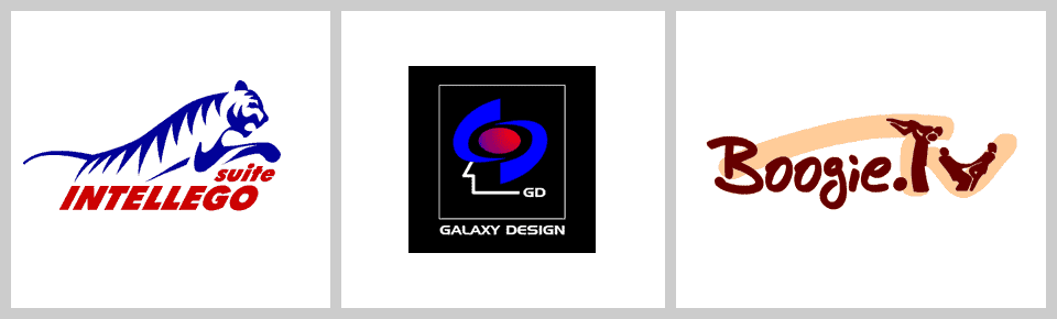 Logos for: software, designer studios, and a web-portal.
